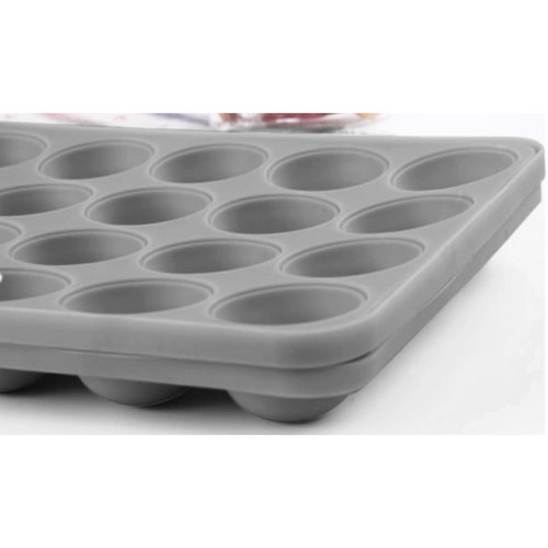 Jest to narzędzie kuchenne, które pomaga w równomiernym formowaniu ciasteczek w równych kulkach. Forma mieści 20 otworów oraz 20 patyczków.