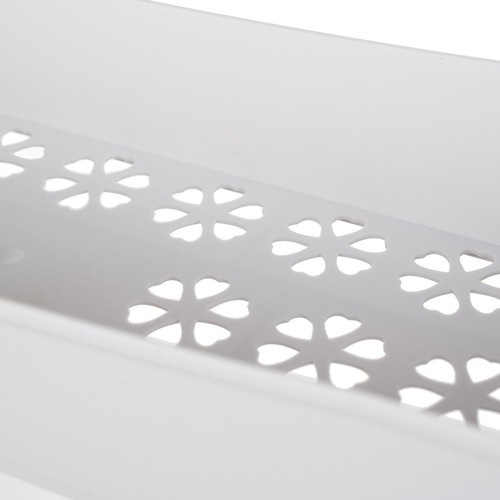 - ELEGANCKI DESING – Wykonana z wysokiej jakości materiału PP (polipropylen), półka łączy w sobie trwałość i lekkość, co sprawia, że jest łatwa w przenoszeniu i odporna na wilgoć oraz zarysowania. Każda z półek posiada laserowo wycięty spód we wzór kwiatów z płatkami w kształcie serca, co dodaje jej subtelnego uroku i sprawia, że staje się ozdobnym elementem łazienki. Wzór nie tylko podkreśla estetykę, ale także umożliwia lepszą cyrkulację powietrza, co jest istotne w wilgotnym łazienkowym środowisku.