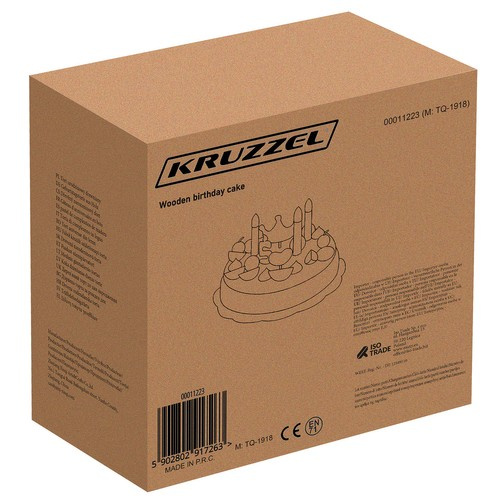 - SPECYFIKACJA – kolor: wielokolorowy; materiał: drewno; ilość elementów w zestawie: 48; wymiary tortu (śr/wys): 18,5/11 cm; waga: 1,2 kg; waga w opakowaniu: 1,23 kg.