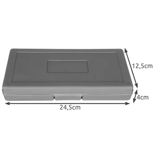 - 16 nasadek – 4mm / 4.5mm / 5.0mm / 5.5mm / 6mm / 6.5mm / 7mm / 7.5mm / 8mm / 9mm / 10mm / 11mm / 12mm/ 13mm / 15 mm / 16 mm