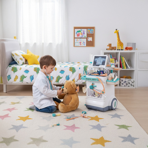 Zestaw Zestaw lekarski dla dzieci z akcesoriami XXL to prawdziwy szpital w wersji dziecięcej – 26 elementów, wózek na kółkach, panel EKG i RTG oraz realistyczne efekty dźwiękowe i świetlne. To nie tylko zabawka, ale pełnowartościowe narzędzie rozwoju emocjonalnego, poznawczego i społecznego. Dziecko uczy się empatii, odwagi i komunikacji, bawiąc się w prawdziwego lekarza.