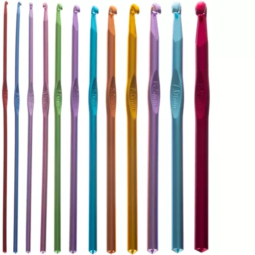 wszystkie rozmiary szydełek są wyraźnie oznaczone – każde szydełko aluminiowe posiada czytelne oznaczenie rozmiaru oraz ergonomiczne wypłaszczenie, które zapobiega zmęczeniu dłoni, dzięki temu z łatwością sięgniesz po właściwe narzędzie, nawet w trakcie intensywnego dziergania